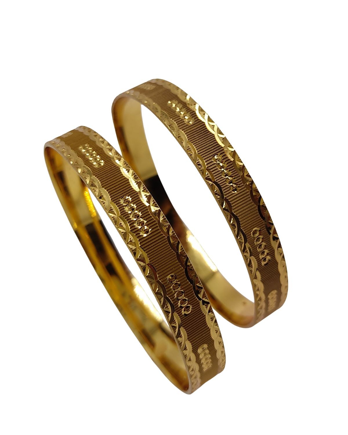 -Set Of 2 Gold-Plated Classic Paisley Shaped Textured Handcrafted Bangles,