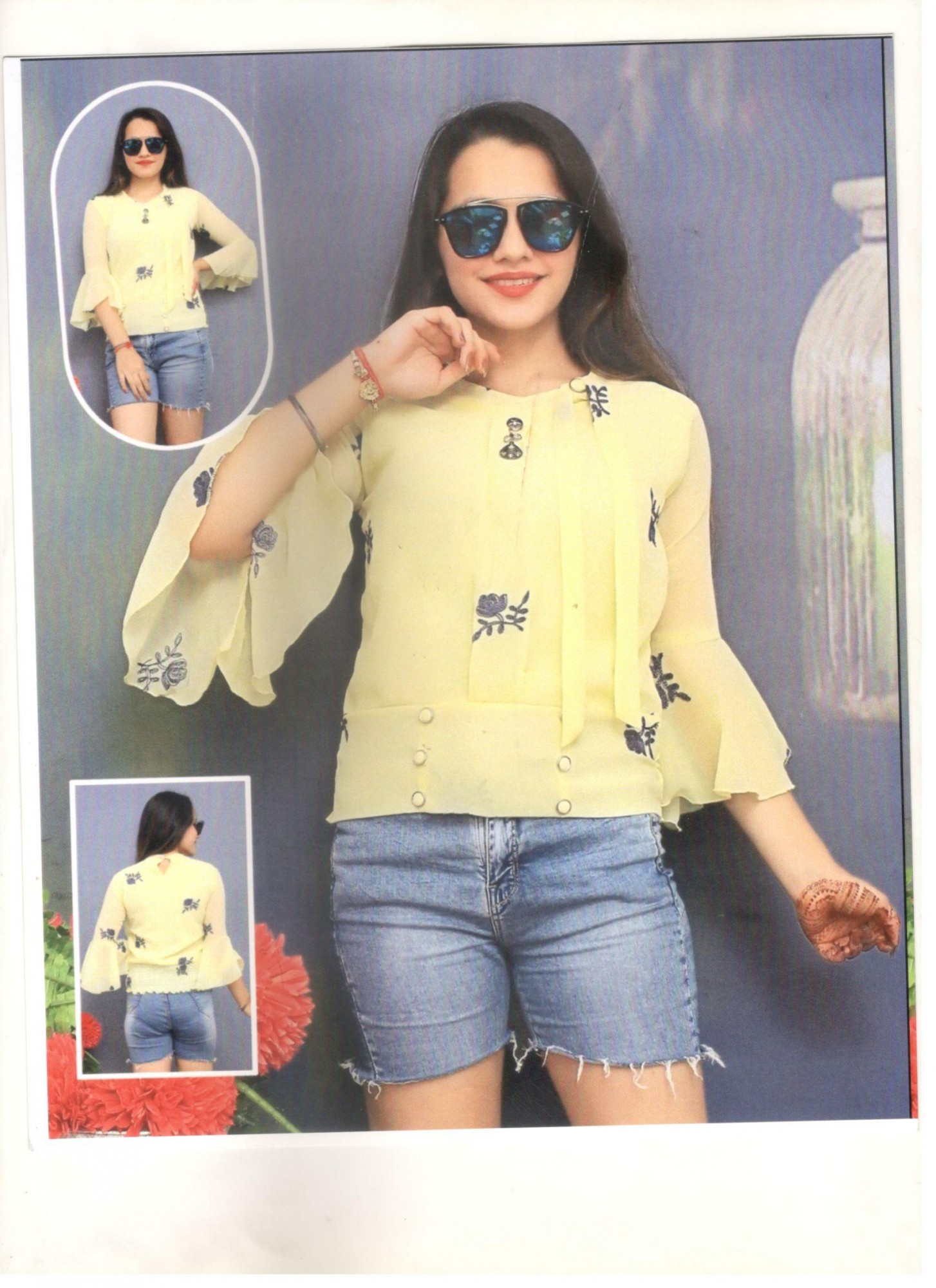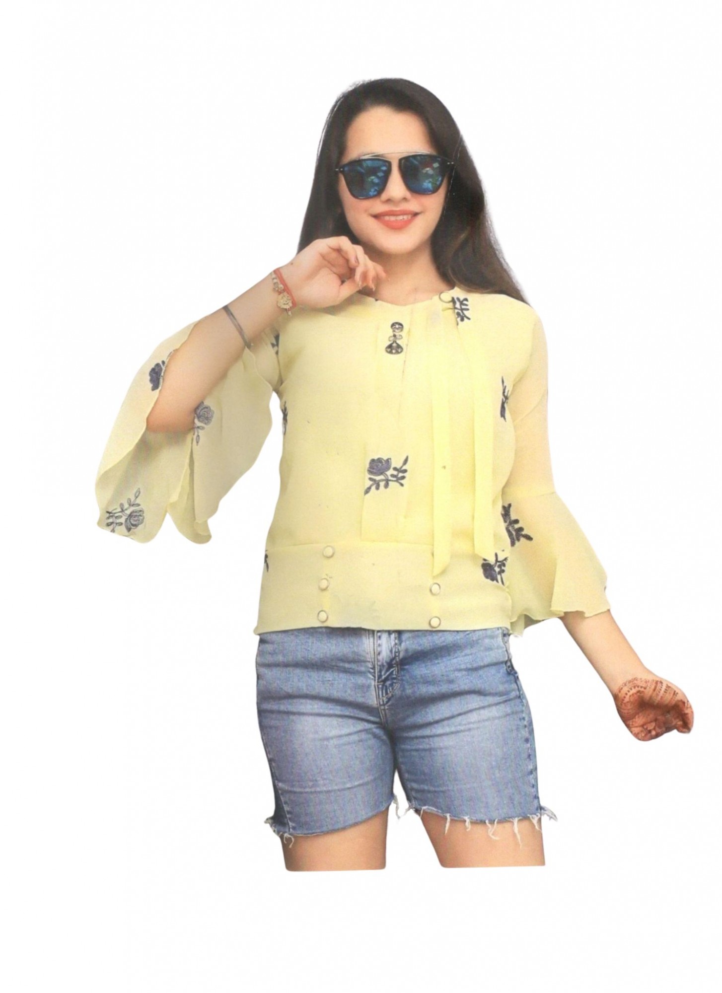 Excellent Top Wear Women Yellow Gorjet Style Floral Print Top